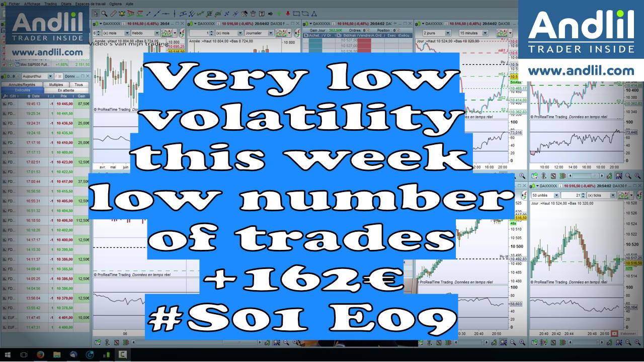 Very low volatility this week, low number of trades 162€ #S01 E09
