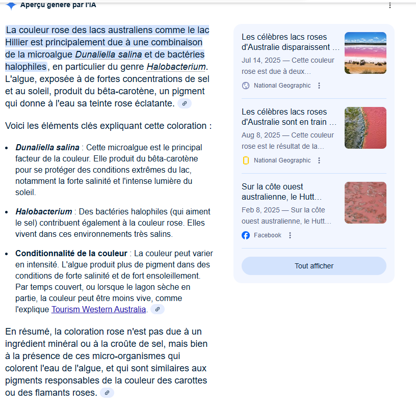 J'interviens pour apporter mon hypothèse sur le lac rose australien.