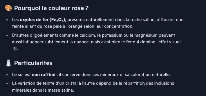 A priori c'est purement marketing le sel rose de l'Himalaya .. il ne vient même pas vraiment de l'Himalaya ^^
