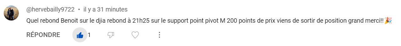 Merci à cet internaute qui a pris le temps de me remercier. Il a fait +200 points sur le Dow Jones juste en écoutant le Good Morning Trading